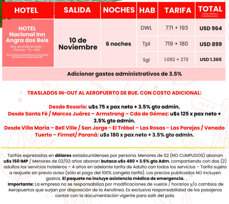 Angra Dos Reis / Aéreo desde Bs As / Noviembre