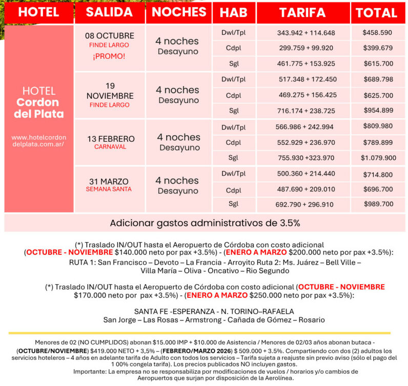 Promoción / Mendoza / Aéreo Cor / Octubre a Marzo 2026