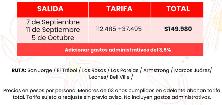 -Traslado hasta Villa General Belgrano. Almuerzo a cargo del pasajero.