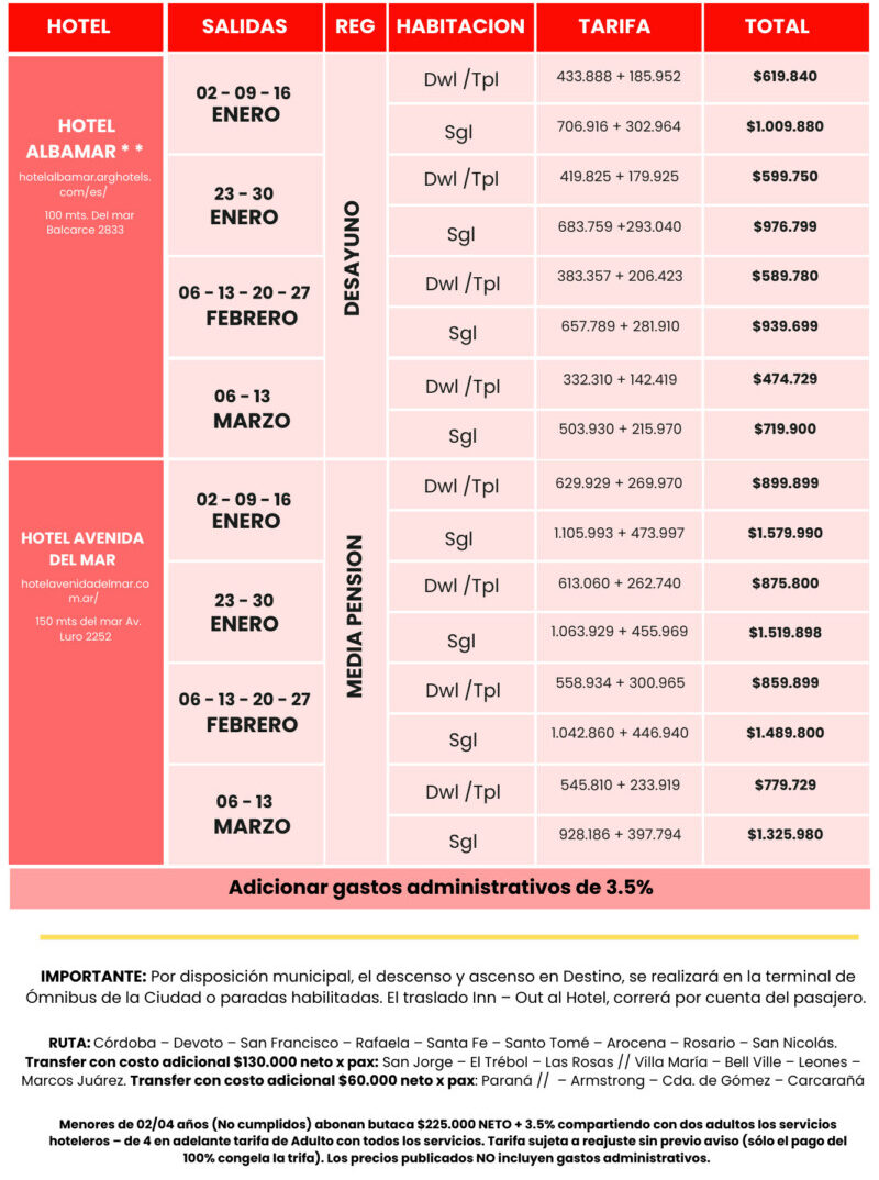 Mar del Plata / Enero a Marzo – Bus Chárter Mix