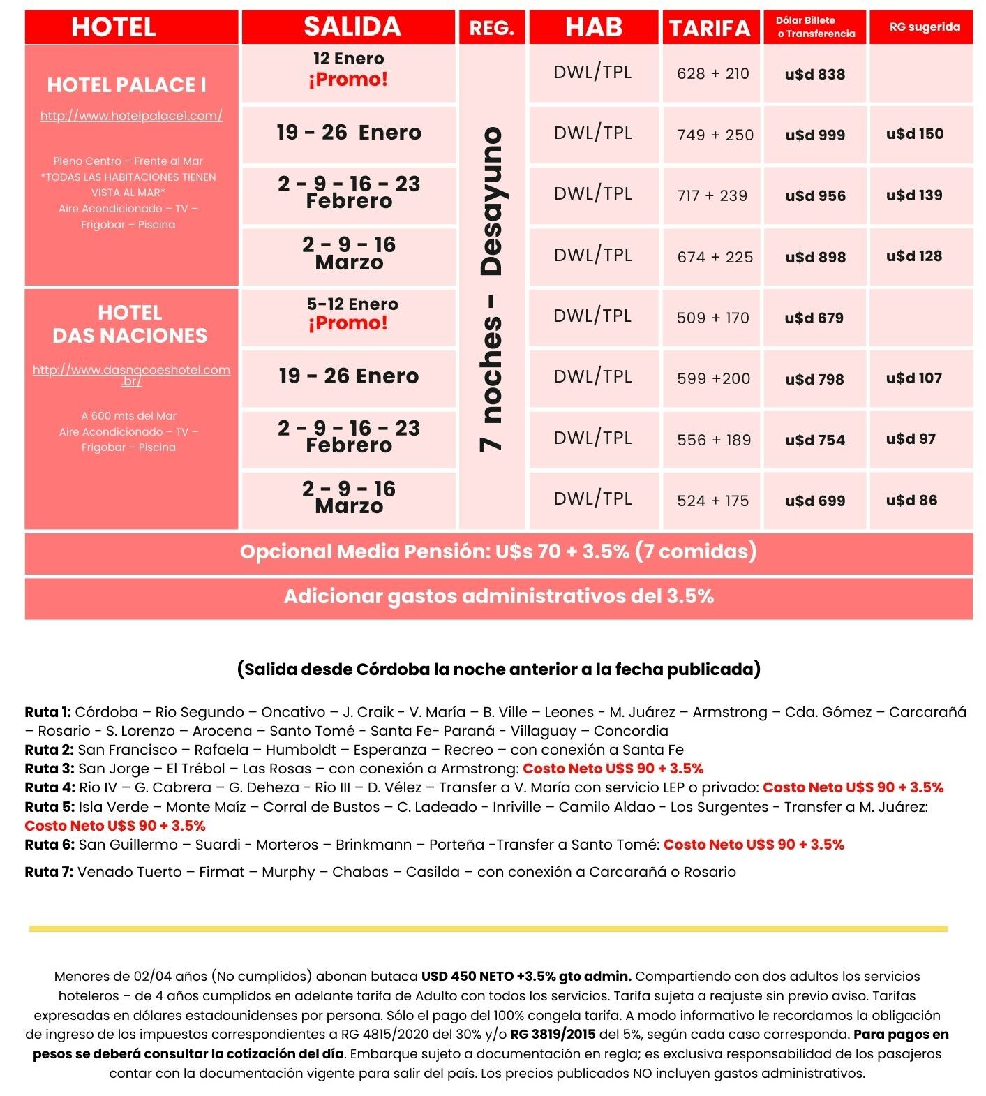 -7 NOCHES de alojamiento con régimen según indique