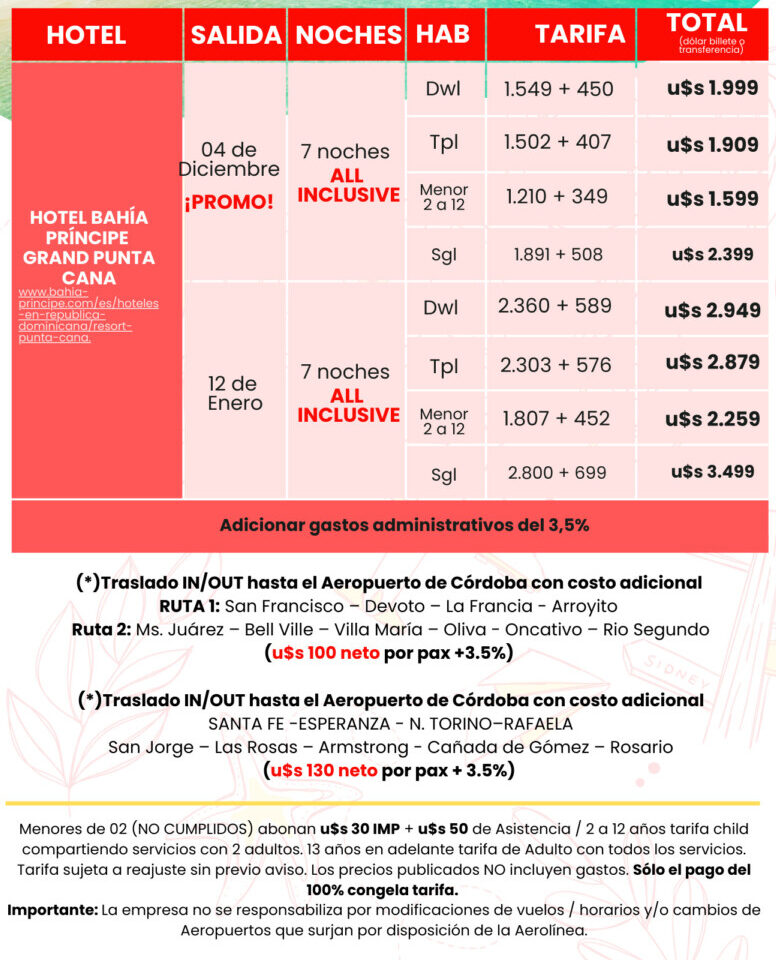 Punta Cana / All Inclusive / Vuelo directo desde Cor / Diciembre 2025 – Enero 2026