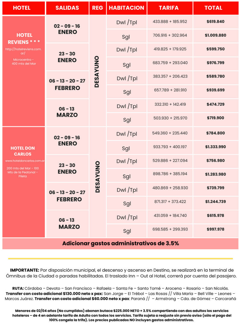 Villa gesell 2026 Tarifario